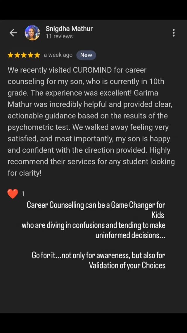 CuroMinds is a online career counselling platform offering career, emotional, and professional counselling services to both students and professionals. Uniquely, it caters to a wide range of counselling needs, spanning all ages and aspects of life, from personal to professional.
